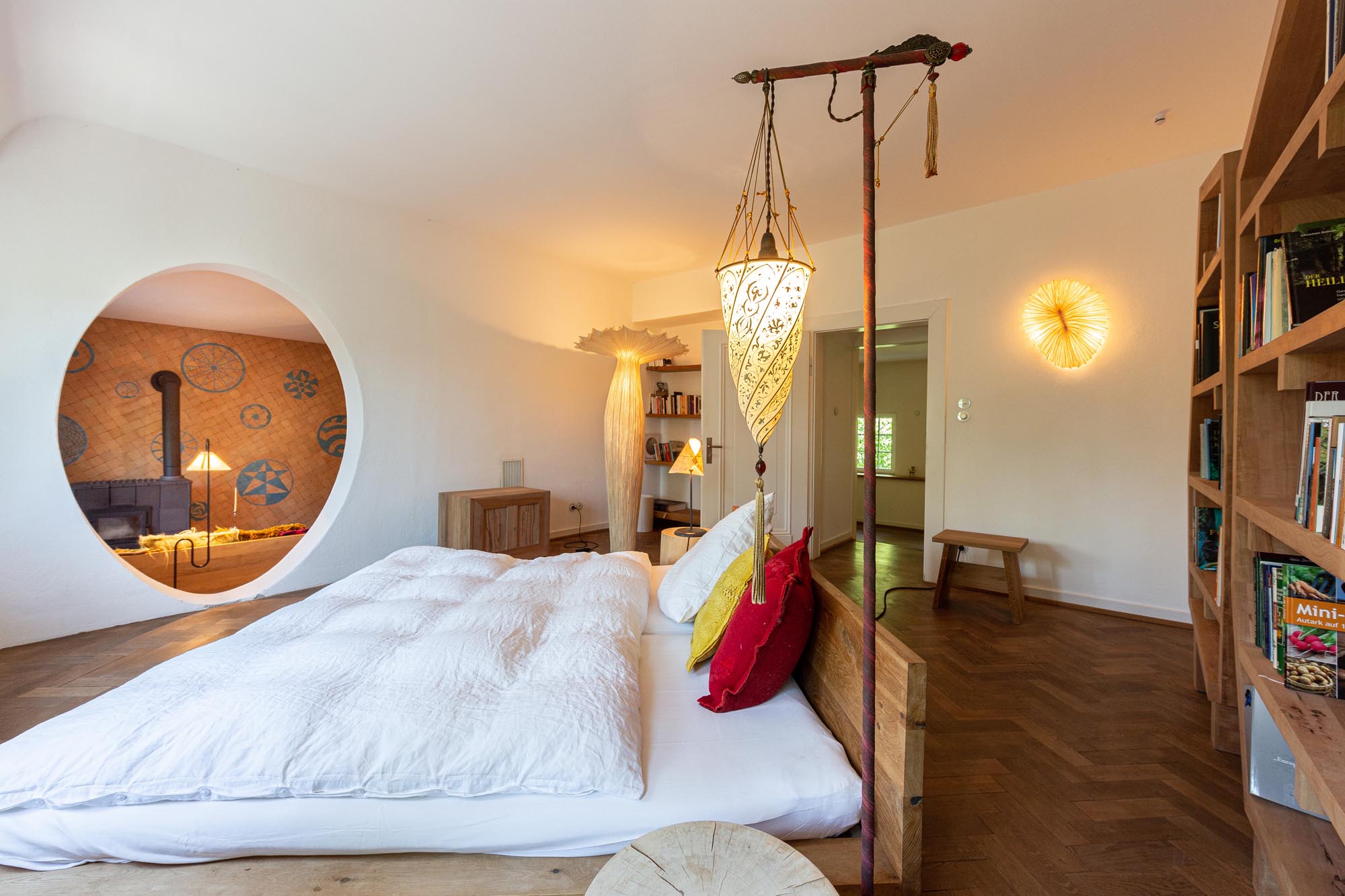 VORTEX GARDEN – Mathildenhöhe – Suite Martinus Garten mit lauschigen Ecken, Wasserspielen, Teichen und vielen Kunstwerken.